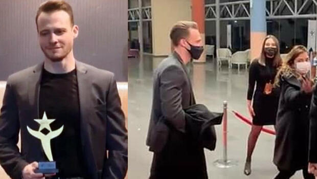 Kerem Bürsin, katıldığı ödül töreninde sahneden inerken sunucu Bay J’nin "Kerem Bey zor şartlarda çalışıyor. Gözleriniz dolacak ama...