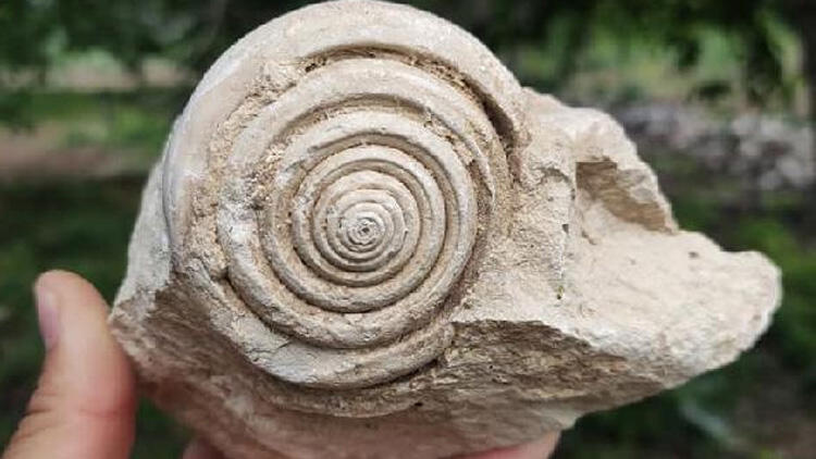 Mersin'in Toroslar ilçesinde bisiklet sürücüsü Süleyman Uygun 60 milyon yıl öncesine ait salyangoz fosili buldu....