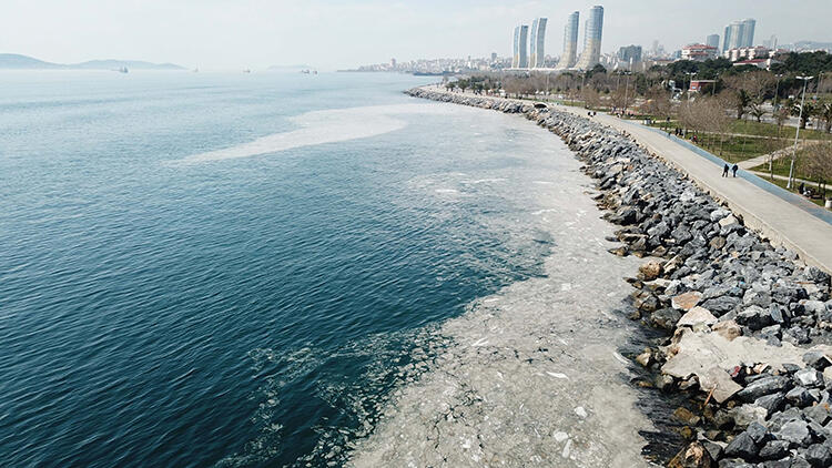 İstanbul'da Anadolu Yakası'nda tedirgin eden görüntü... Pendik ve Kartal sınırında kalan sahil şeridinde deniz yüzeyindeki kirlilik endişe yarattı....